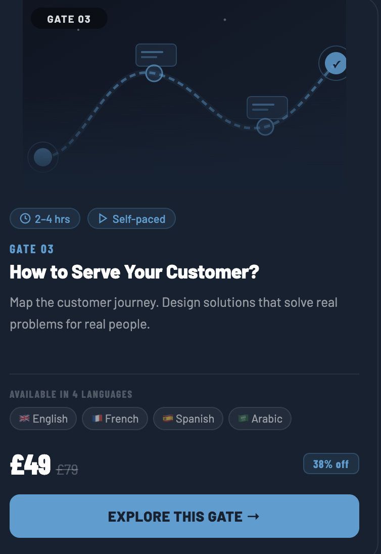 10 étapes. De véritables mentors. Pas de jargon. Basé sur le cadre « Disciplined Entrepreneurship » du MIT.