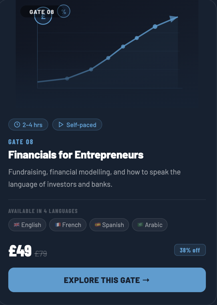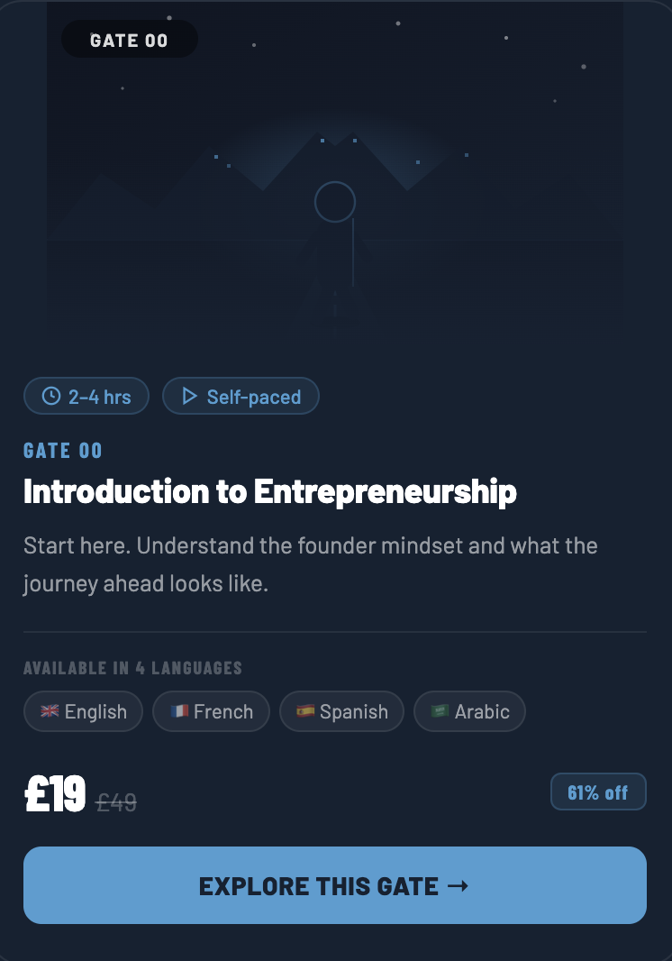 Un parcours d'apprentissage complet et flexible qui vous permet d'acquérir de véritables compétences en matière de création d'entreprise, et non pas seulement des connaissances théoriques, et d'obtenir une certification attestant de vos capacités.