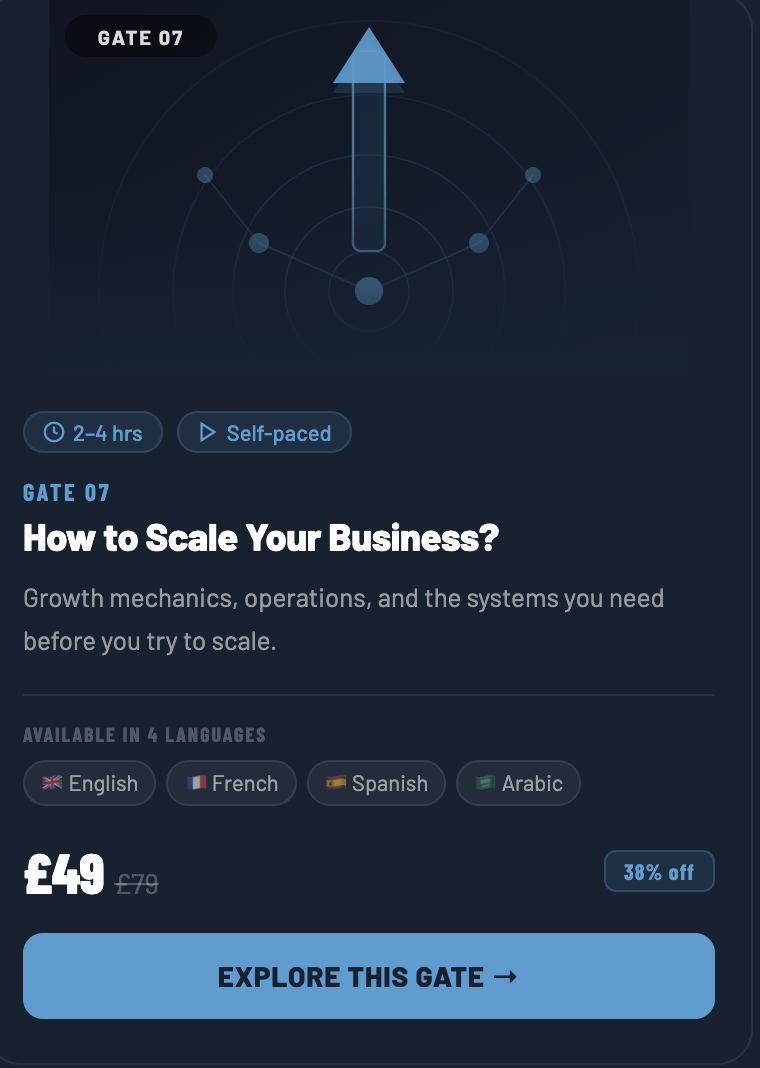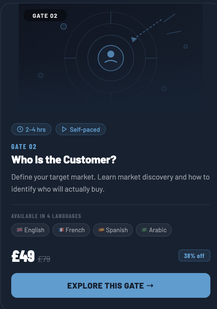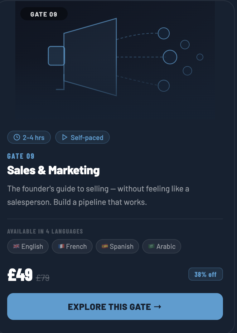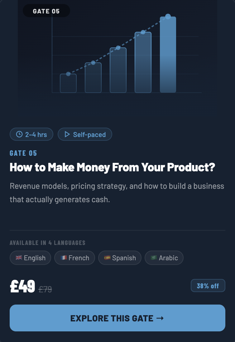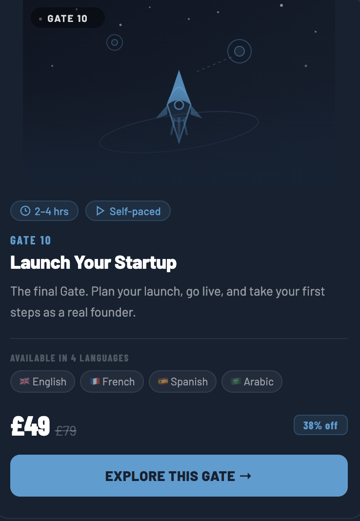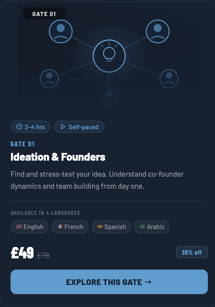 Tous les Gates, plus le Startup Validator, AI Co-Founder (Jetpack), du contenu bonus et une assistance prioritaire.